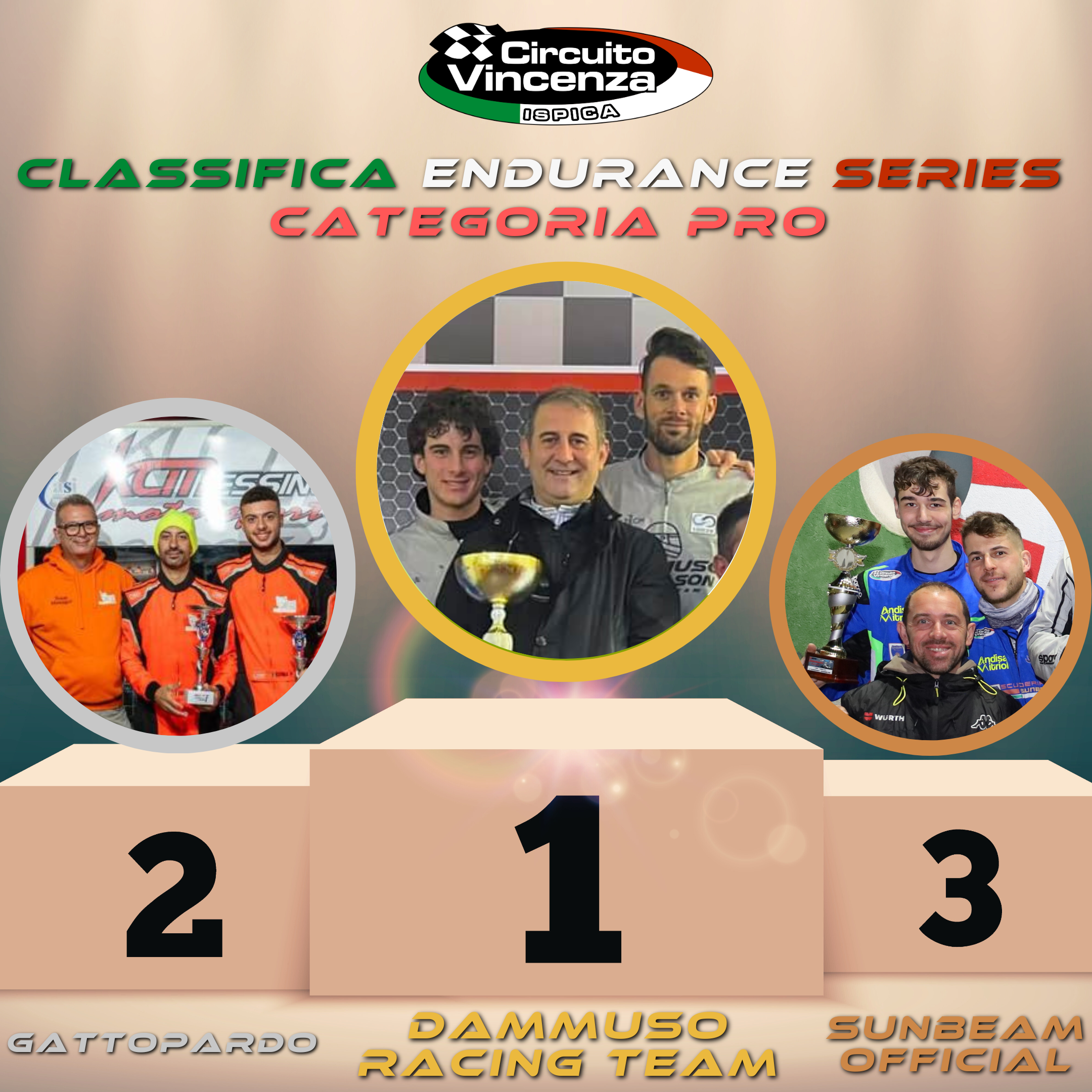 👉🏻 Nella categoria PRO il campionato è stato vinto dal team DAMMUSO RACING che solo dopo l’ultima prova è riuscita a spuntarla, per soli 4 punti, sugli agguerriti inseguitori e diretti rivali per la prima piazza del podio.